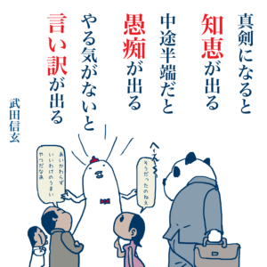 真剣になると知恵が出る。 中途半端だと愚痴が出る。 やる気がないと言い訳が出る